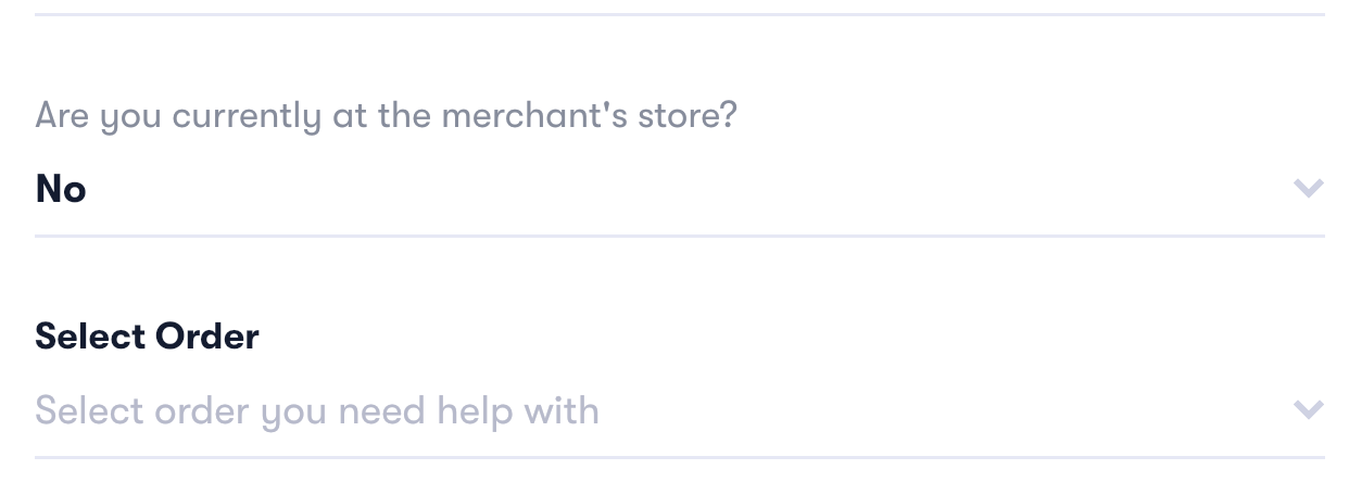 8. Choose "NO" under Are You Currently At The Merchant's Store, and just leave Select Order blank.