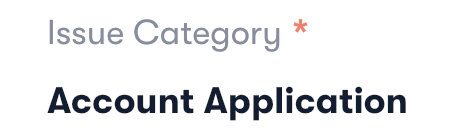 7. Select "ACCOUNT APPLICATION" under Issue Category
